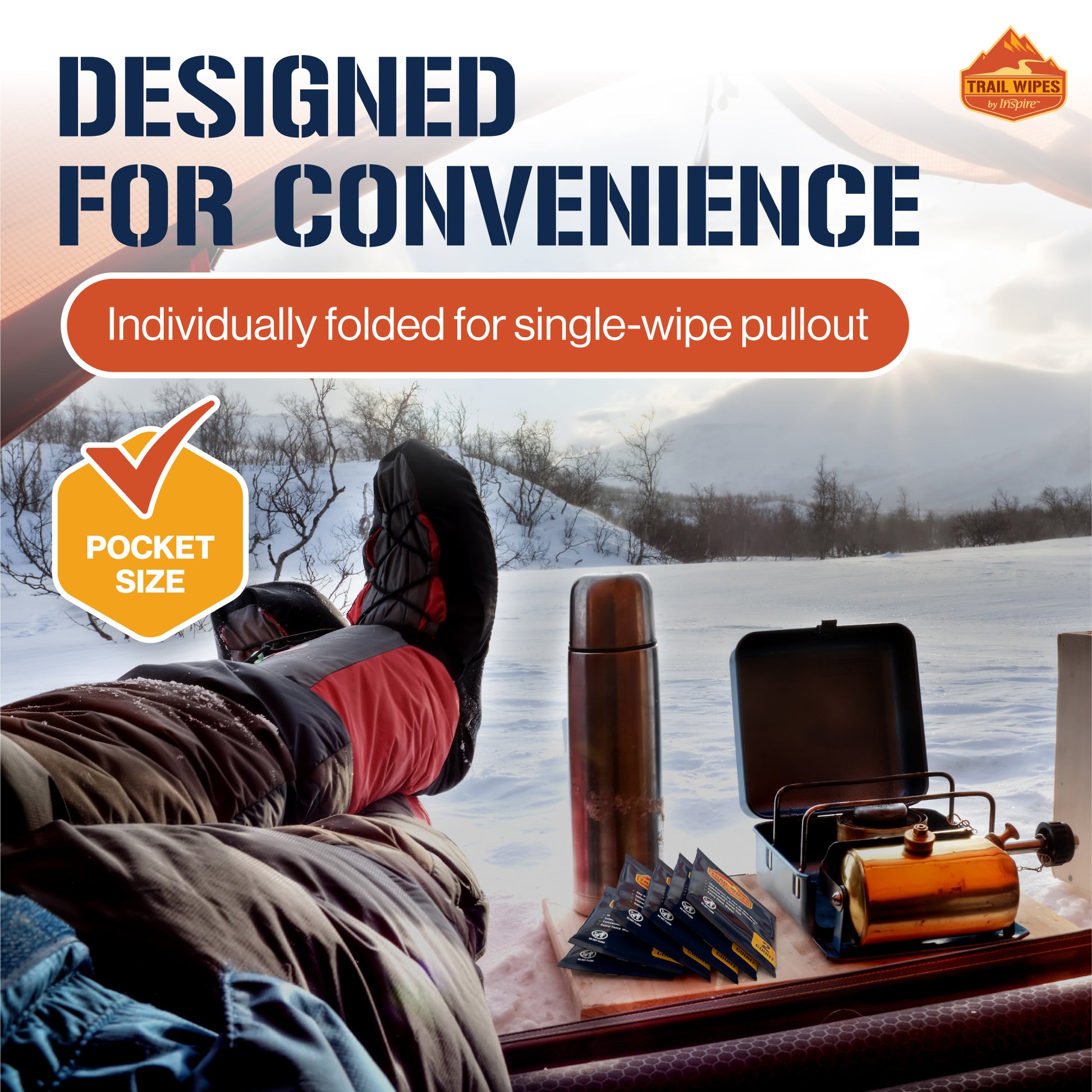 Inspire Trail Wipes, the ultimate camping wipes for adults who love to explore the great outdoors! Our biodegradable wipes are the perfect addition to your hiking gear and backpacking essentials. Whether you're on a rugged mountain trail or enjoying a relaxing campground, these travel wipes are a must-have item for any camping adventure.